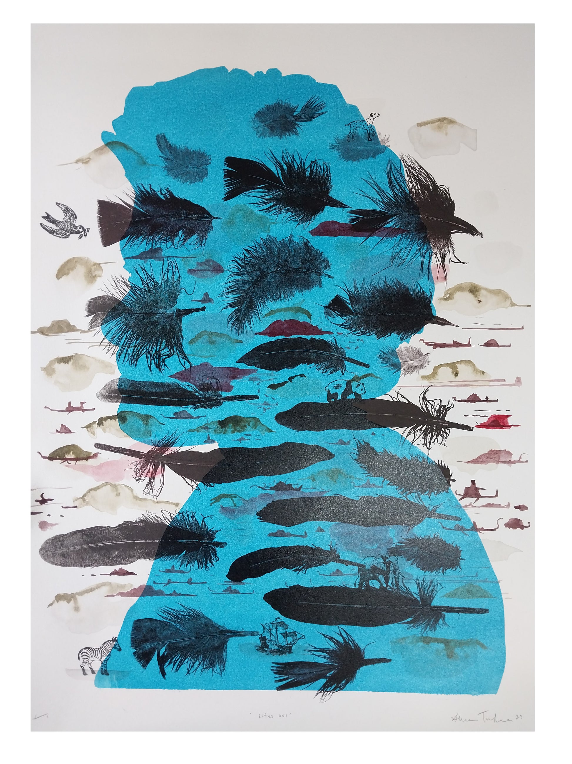 Woodblock, found object, water colour with Pencil 1 of 1